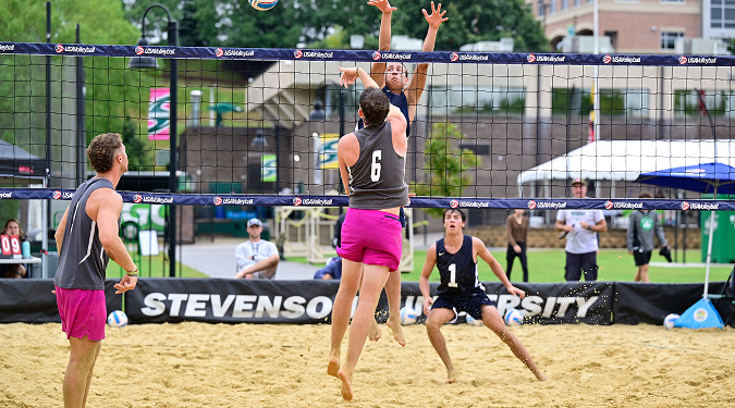 The Men’s Collegiate Beach Challenge was a three-day event featuring 32 teams at Stevenson University. USA Volleyball started this event in 2021 in an effort to give college men’s beach volleyball players a competitive environment to enhance their skills.