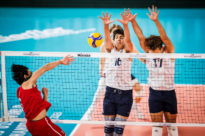 Caiden Carreira and Hawai’i commit Finn Kearney had back-to-back blocks in the first-game overtime as the United States swept Puerto Rico 28-26, 25-17, 25-17 in the round of 16 at the FIVB U19 World Championship on Tuesday in Argentina.
