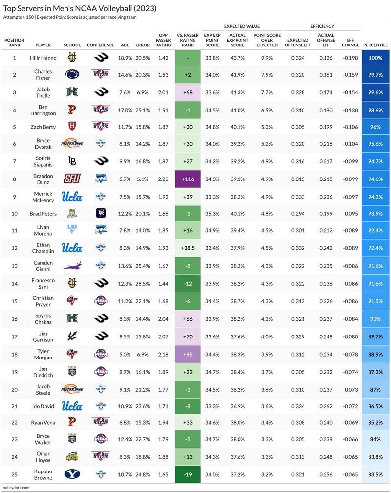 Attack percentage leaders