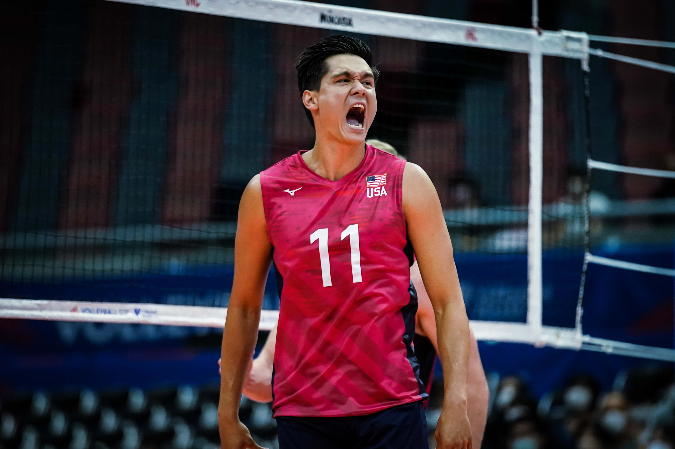 NCAA players on U.S. roster: Micah Christenson (USC 2012-15); TJ DeFaclo (Long Beach State 2016-19); Kyle Ensing (Long Beach State 2016-19); Jake Hanes (Ohio State 2018-19); Jeff Jendryk (Loyola 2015-18); Cody Kessel (Princeton 2012-15); Tyler Mitchem (Lewis 2017-2022); Garrett Muagututia (UCLA 2007-10); Aaron Russell (Penn State 2012-15); Eric Shoji (Stanford 2009-12); David Smith (UC Irvine 2007-10); Mitch Stahl (UCLA 2014-17); Josh Tuaniga (Long Beach State 2016-19)