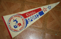 Nothing like having a throwback volleyball item featuring both an old-school logo and the logo of an alcohol distributor. USA Volleyball formed in 1928 and has served as the governing body for volleyball in the United States. In addition, the U.S. Men’s National Team this summer won the FIVB World League, while the U.S. Women’s National Team won the FIVB World Championships. To order this pennant, click here.