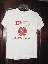 It’s the final season before Hall of Fame IPFW coach Arnie Ball retires, and this vintage shirt is from the 1980s when Ball started the volleyball program at IPFW. Ball along with coaching both the IPFW women’s and men’s volleyball teams that decade routinely held local volleyball camps in an effort to help grow the game. This shirt also features IPFW in crimson and white, which were among the school’s colors before changing to the current blue and white school colors in 1987. The