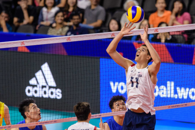NCAA players on U.S. roster: Matt Anderson (Penn State 2006-08); Taylor Averill (Hawai’i 2012-15); Micah Christenson (USC 2012-15); Kyle Dagostino (Stanford 2015-19); TJ DeFalco (Long Beach State 2016-19); Kyle Ensing (Long Beach State 2016-19); Max Holt (Penn State 2006-09); Thomas Jaeschke (Loyola 2013-15); Jeff Jendryk Loyola 2015-18); Jake Langlois (BYU 2014-17); Micah Ma’a (UCLA 2016-19); Dan McDonnell (UC Irvine 2011-12); Garrett Muagututia (UCLA 2007-10); Ben Patch (BYU 2013, 2016-17); Aaron Russell (Penn State 2012-15); Kyle Russell (UC Irvine 2012-16); Michael Saeta (UC Irvine 2013-17); Taylor Sander (BYU 2011-14); Erik Shoji (Stanford 2009-12); Kawika Shoji (Stanford 2007-10); David Smith (UC Irvine 2004-07); Mitch Stahl (UCLA 2014-17); Josh Tuaniga (Long Beach State 2016-19); Larry Tuileta (USC 2015; Hawai’i 2017-18); Dustin Watten (Long Beach State 2005-09)