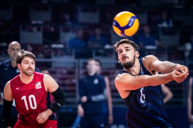NCAA players on U.S. roster: Kyle Dagostino (Stanford 2014-19); TJ DeFaclo (Long Beach State 2016-19); Kyle Ensing (Long Beach State 2016-19); Thomas Jaeschke (Loyola 2013-2015); Jeff Jendryk (Loyola 2015-18); Tyler Mitchem (Lewis 2017-2022); Garrett Muagututia (UCLA 2007-10); Aaron Russell (Penn State 2012-15); Kyle Russell (UC Irvine 2012-16); James Shaw (Stanford 2013-16); Eric Shoji (Stanford 2009-12); David Smith (UC Irvine 2007-10); Mitch Stahl (UCLA 2014-17); Josh Tuaniga (Long Beach State 2016-19)