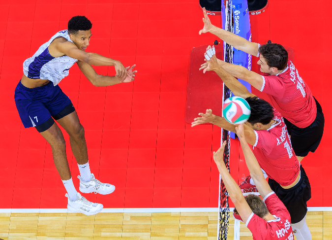 Opposite Jake Hanes led all players with 22 kills on a .349 attack percentage against Canada. The former Ohio State opposite now enters the final day of the tournament second among all players with 77 combined kills throughout the international event.