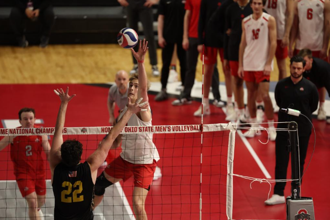 Opposite Daniel Hurley led all players with a career-high seven aces and was one ace shy of tying the Ohio State single-match record for aces. Hurley had three consecutive aces in Ohio State’s 16-point first-game win and then had four straight aces as part of a 6-0 run midway through the third game.