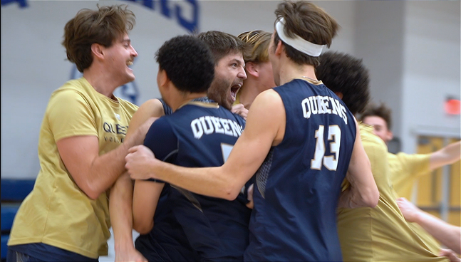 Ruben Emmerich jump started the late-game comeback with a kill and then had three blocks in a four-play span to help tie the score at 11-11. Purdue Fort Wayne was able to retake the lead at 12-11, but Queens responded winning the next four points, including Jack Brinkman having back-to-back aces to complete the comeback.