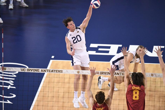 Setter Brett Sheward guided the UC Irvine offense to out-hit Hawai’i .425 to .204 in the opener of the two-match series. The Anteaters had a match-best .588 attack percentage in the first game and then committed one error and hit .481 in the third game.